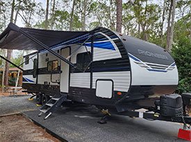 We gladly deliver and set-up our fully outfitted and ultra-comfortable campers and motorhomes at your favorite campgrounds like Disney’s Fort Wilderness Resort, Wekiva Springs State park, Moss Park plus many more locations within central Florida! We also cater to corporate events, music festivals as well as Daytona International Speedway events. All of our beautiful campers and motorhomes are loaded with amenities to create that "home away from home" feeling. Everything from fully stocked kitchens, premium linens and towels, to outdoor chairs and grills. We have you covered at no extra charge. You can expect the same luxury appointments, amenities, and attention to detail regardless of which RV or camper you rent from us. We also respect your privacy so you wont find any logos or advertising on our rental campers or RVs.